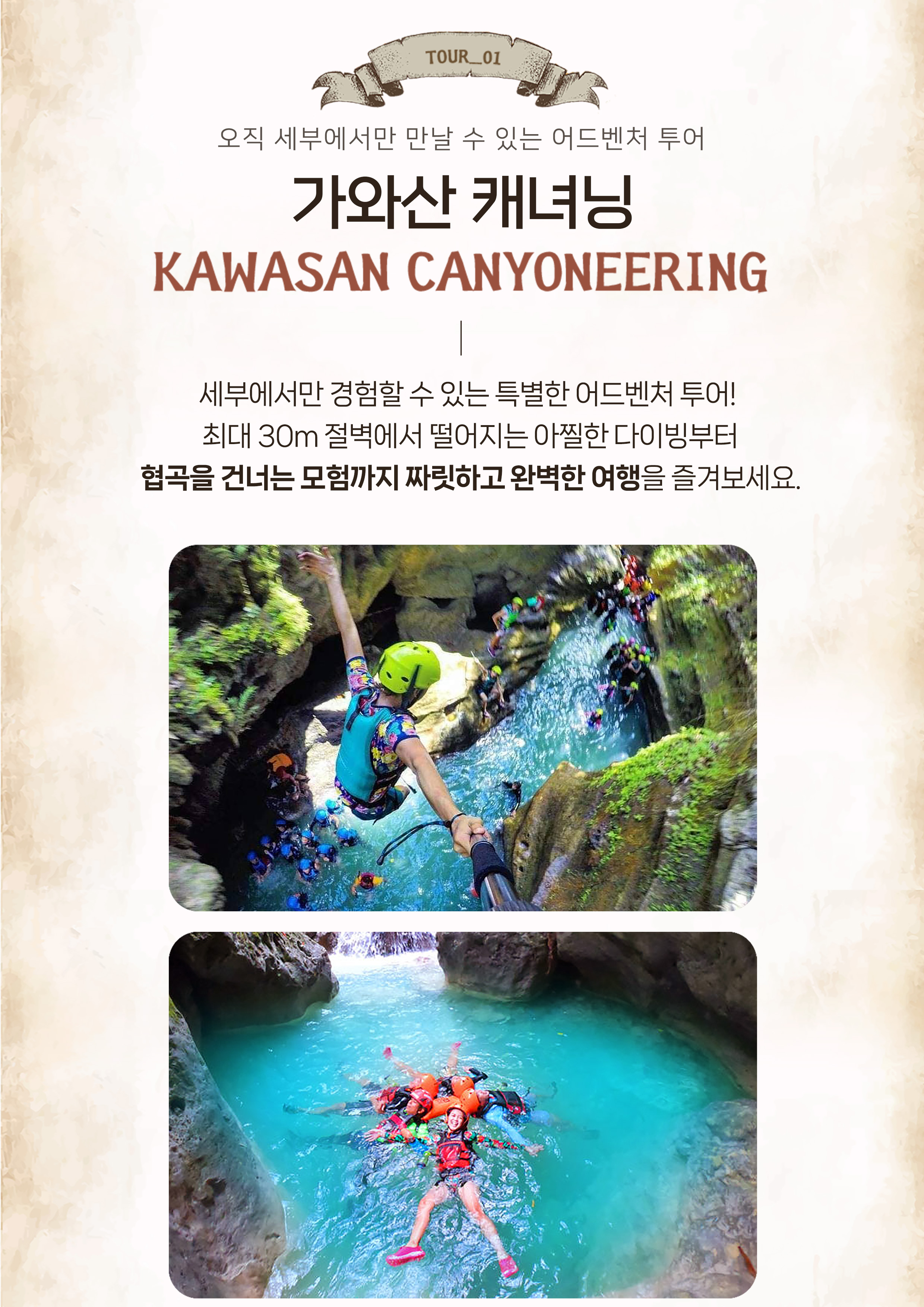 🏞️세부 가와산에서 필리핀 세부에서만 만날 수 있는 아드레날린 최고치 어드벤처 투어인 캐녀닝을 즐겨보세요.