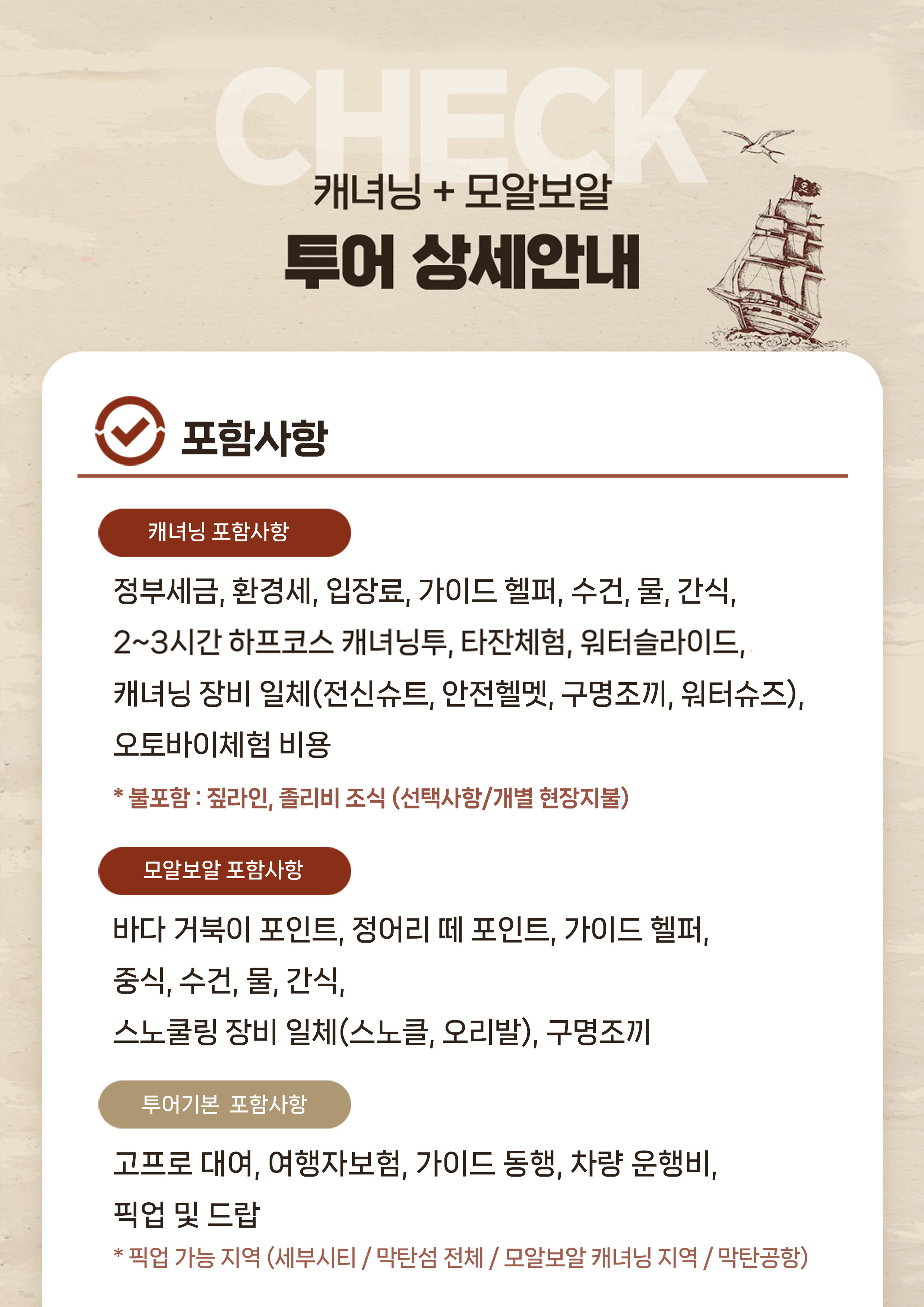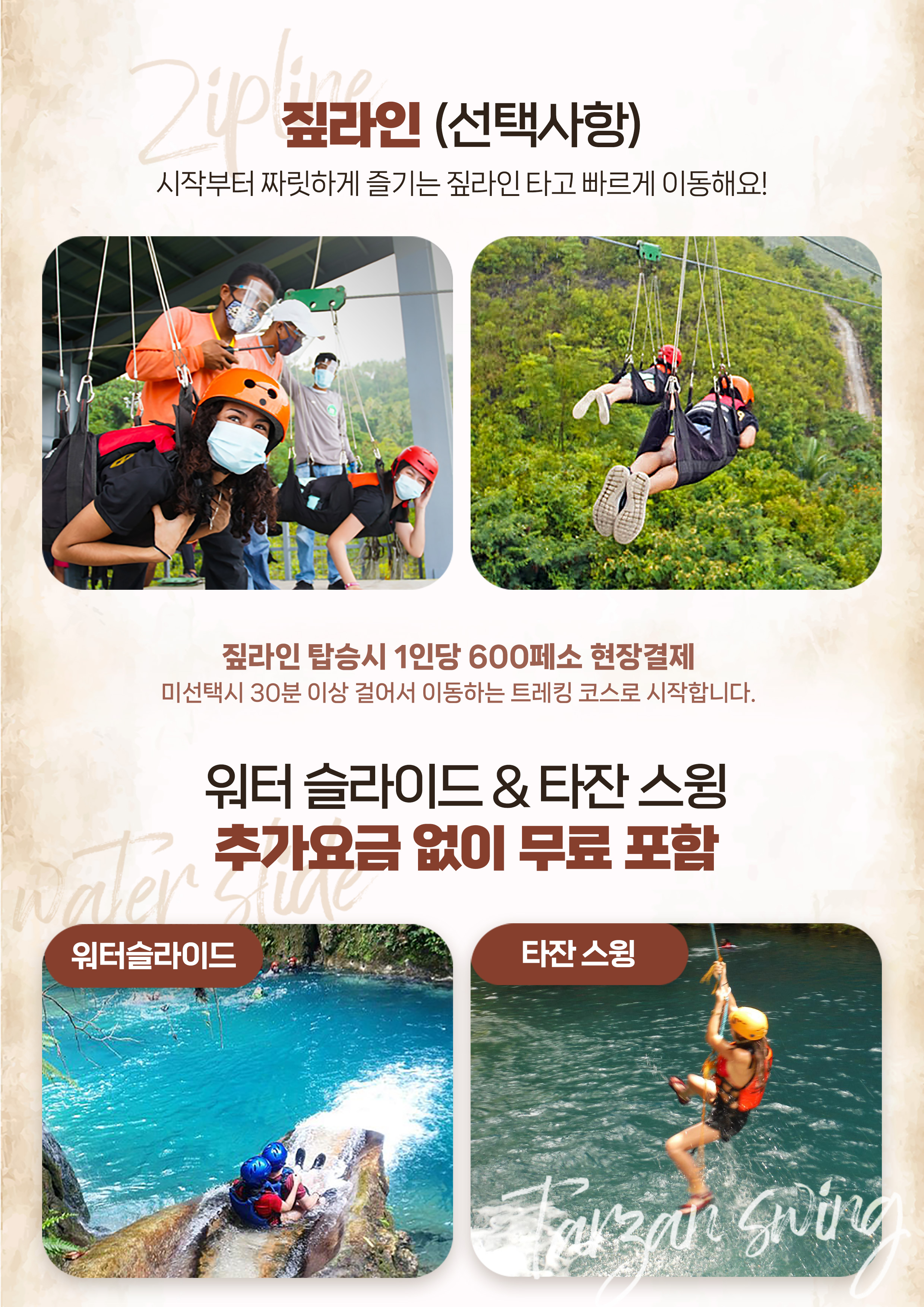 아무리 현지 직원들이 안전에 신경을 쓴다고 하더라도 본인이 주의 하지 않으면 큰 사고로 이어질 수 있는 투어 임을 꼭!