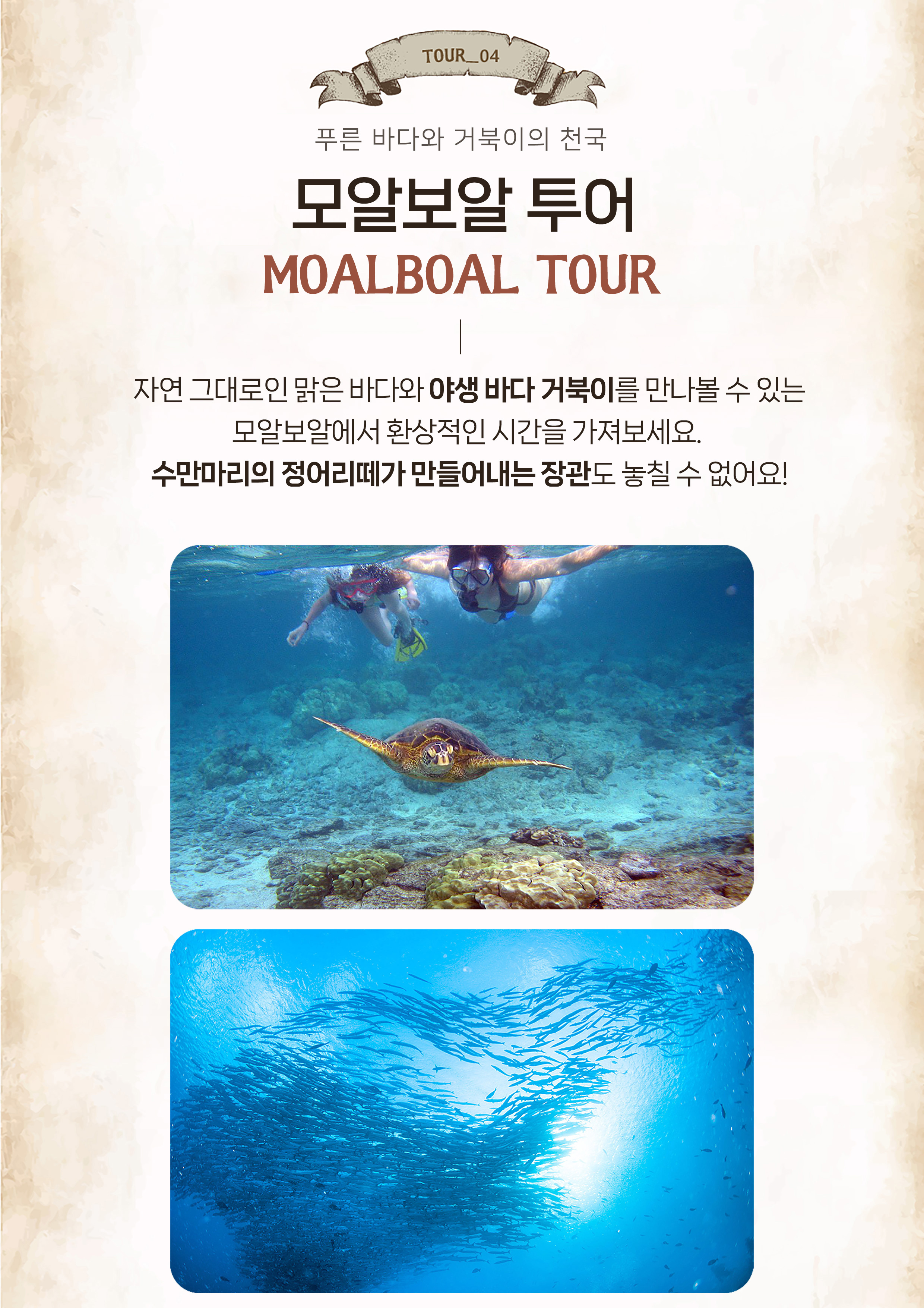 정어리 떼, 거북이 쫓기 체험을 통해 모알보알의 아름다움을 발견하는 시간